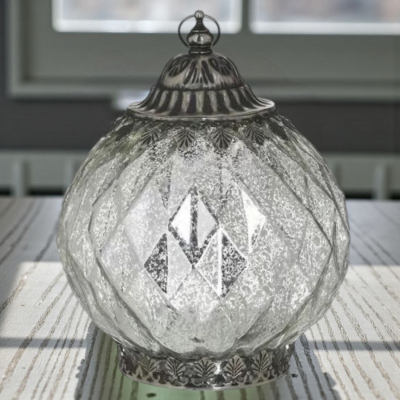 Стъклен лед фенер с кръгла форма в сребристо.