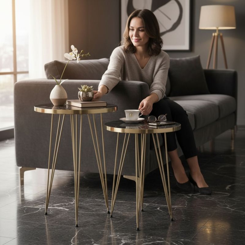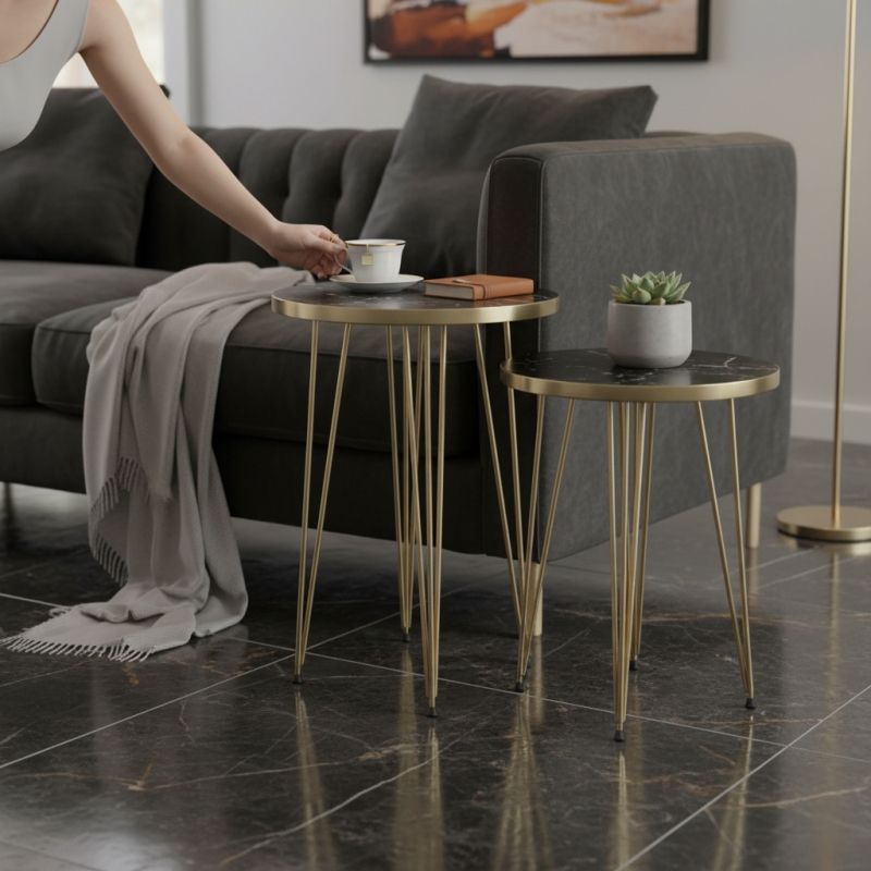 Има мебели, които не натрапват присъствието си, но създават атмосфера и стил, който допълва цялостната визия на помещението. Този комплект от 3 броя, различни по височина маси може да бъде допълнение към интериора и да създаде практичен начин за подреждане или използване в ежедневието. Масите са леки и могат лесно да бъдат премествани и използвани, както по единично, така и като различни комбинации в зависимост от височината, която ви трябва.