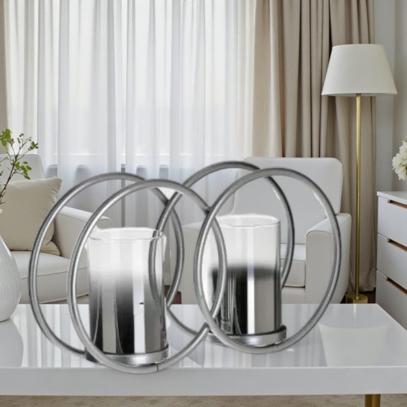 Свещник в сребрист цвят.