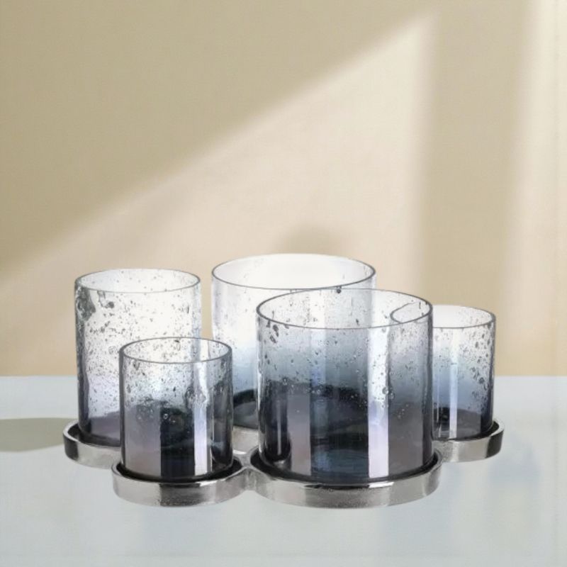 Свещник в синьо и сребристо