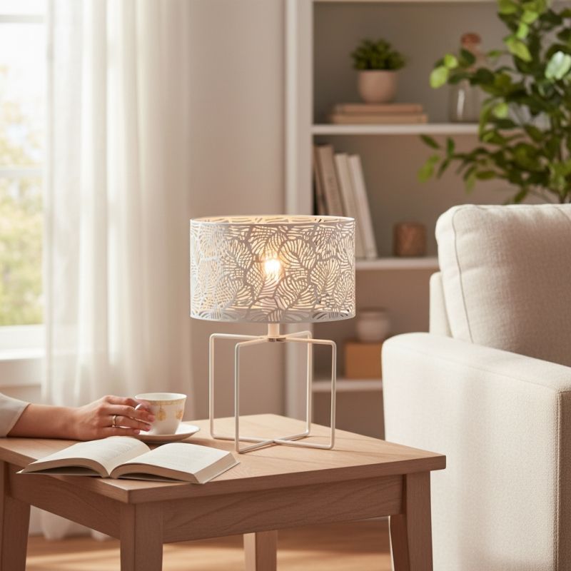 Нощна лампа в сребристо/бяло - метална