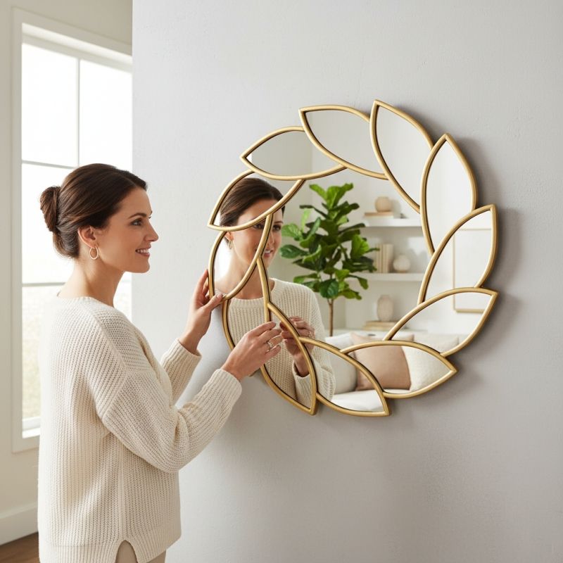Огледало за стена с рамка - листа златисто