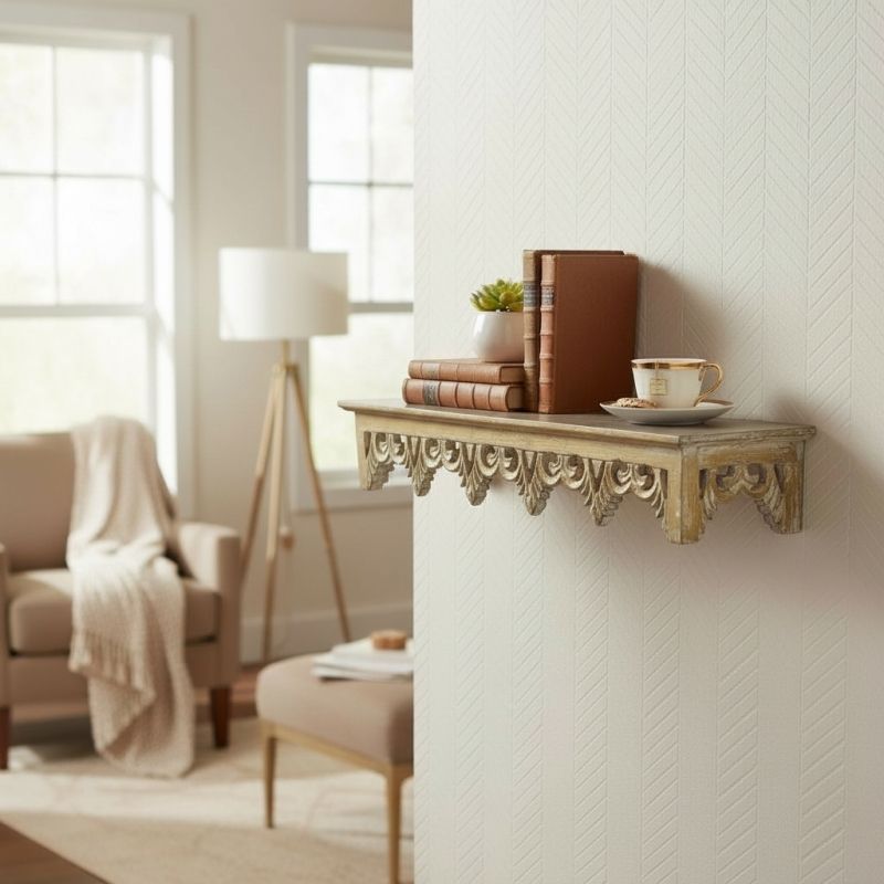 Етажерките от серия ДАНТЕЛЕНА ПРЕЛЕСТ могат да бъдат акцент на стената, който да създаде място за съхранение и подредба на любими предмети. Те могат да се използват, както заедно, така и по отделно и да създадат композиции от различни нива. Винтидж стилът и златистите отблясъци придават излъчване, което се помни, а прорязания кант от дървена дантела е като произведение произлязло от ръцете на майстор дърводелец.