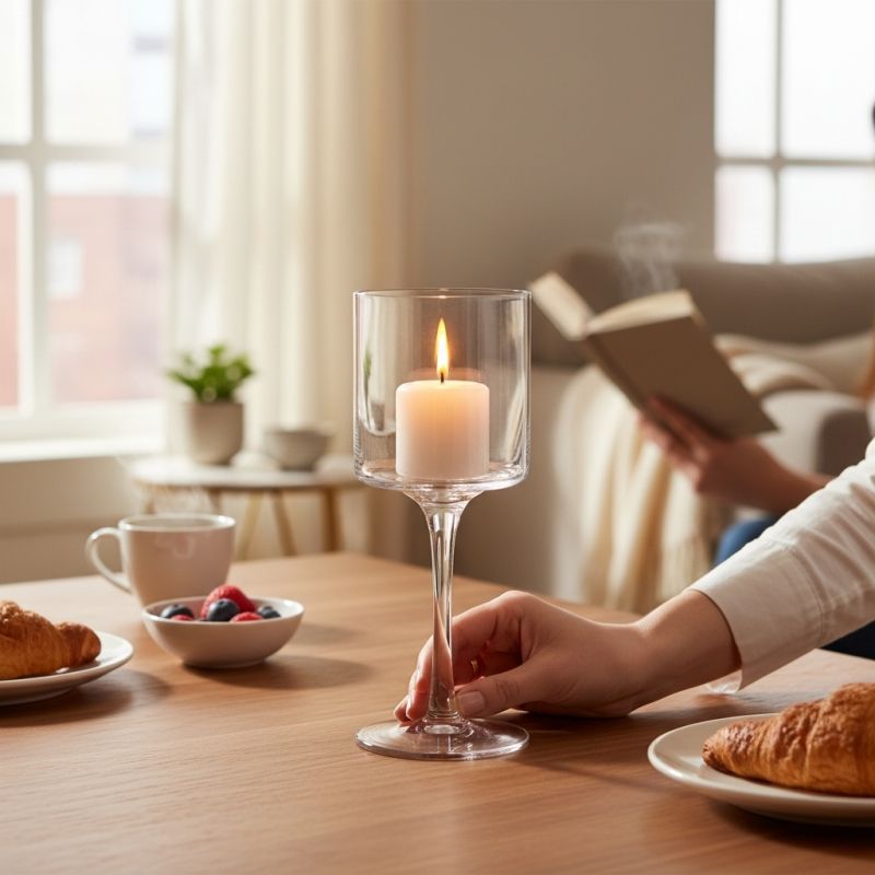 Стъклен свещник на столче 26 см