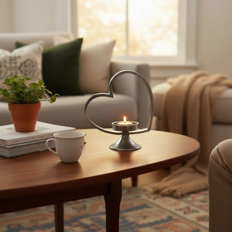 Свещник сърце от метал 21 см