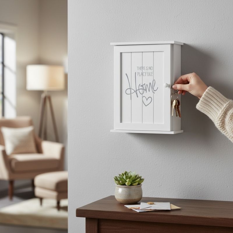 Кутиите за ключове са прекрасен начин да знаете мястото на което се намират всеки път,когато ги потърсите. Те са практични, удобни с различни дизайни й могат да задоволят всеки вкус и изискване за дизайн.Разполагат с малки закачалки за закачане,като това създава ред и по- добра видимост, така ще намерете ключовете си само с един поглед.Подходящи, както за закачане на стена , така и могат да бъдат поставени стационарно на желано от вас място.