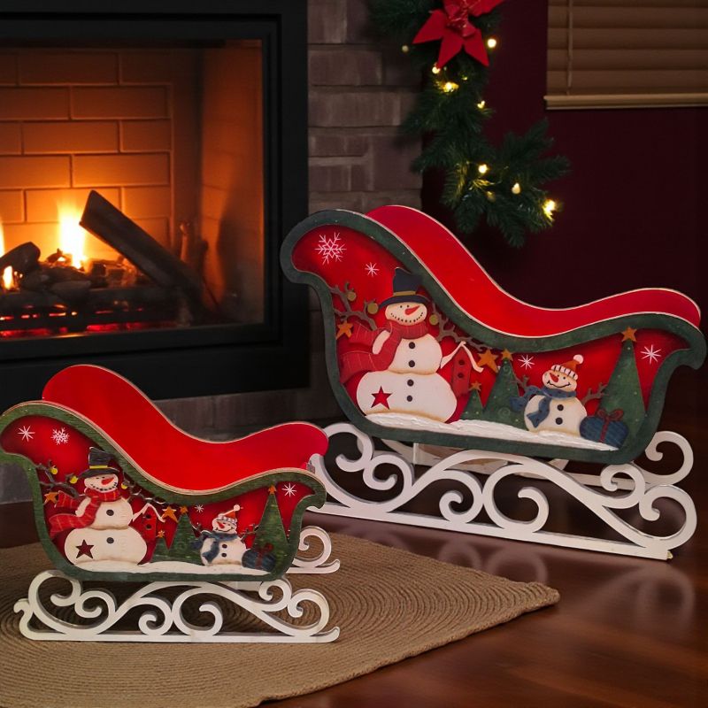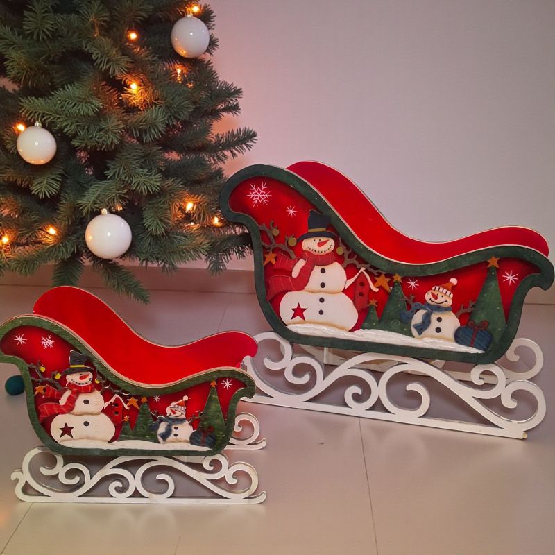Коледни декоративни шейни комплект от 2 броя, които могат да са чудесна декорация под елхата или в дома ви. Хубава идея е и да ги напълните с изненади и да ги поднесете за подарък, като заместите добрия старец в празничната нощ.